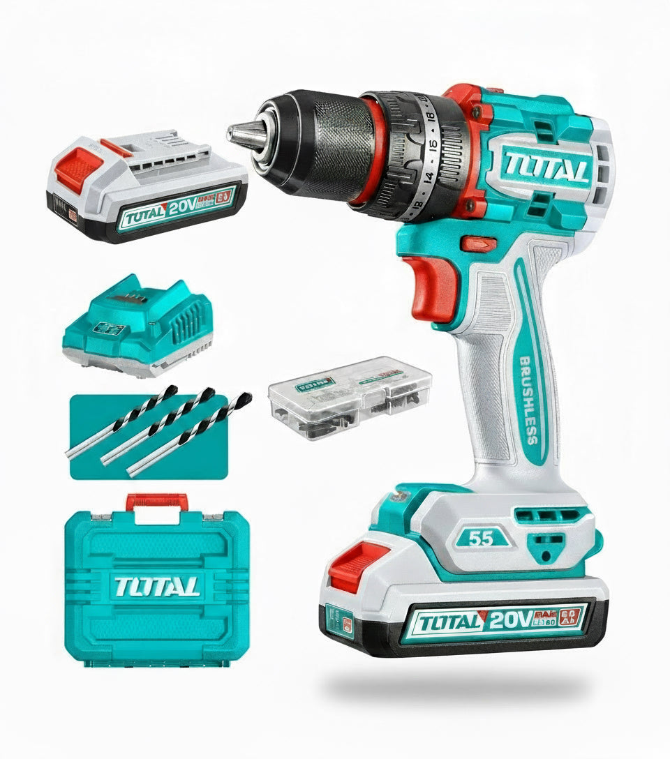 شنيور بطارية 20فولت عزم 55نيوتن براشليس دقاق+2بطارية TOTAL