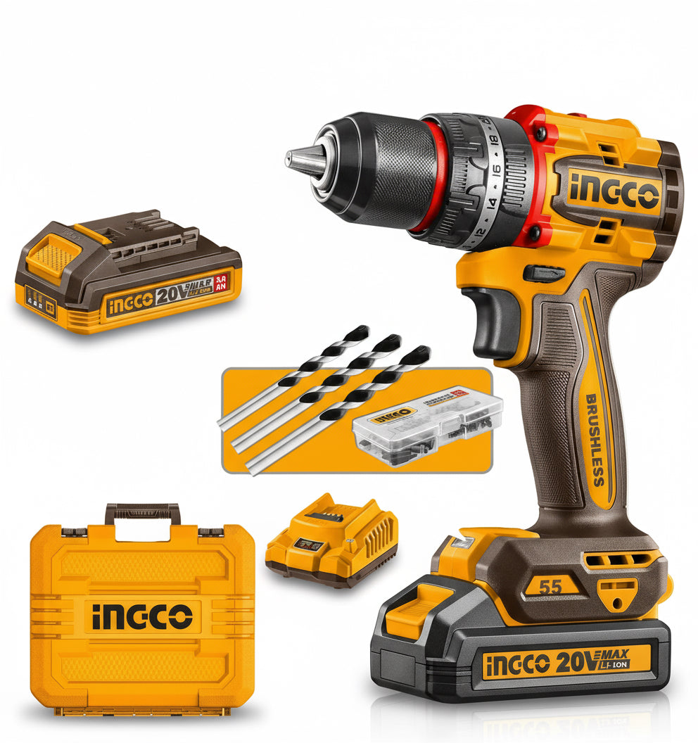 شنيور بطارية 20 فولت عزم 55نيوتن دقاق + 2بطاريه INGCO